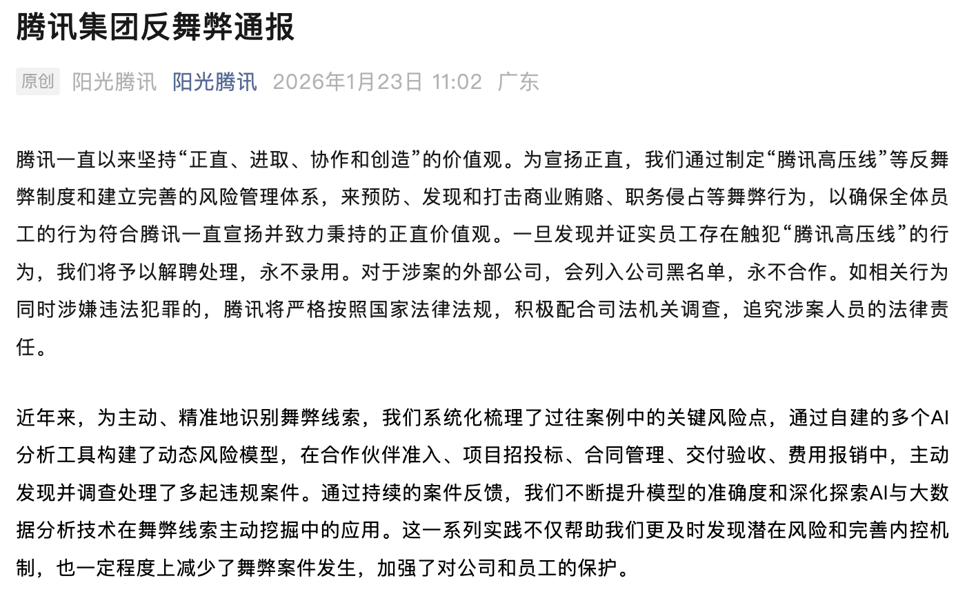 AI反舞弊!腾讯2025年解聘90余人,云事业群涉案最多