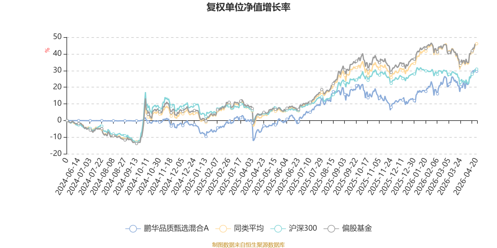 截至4月20日,鹏华品质甄选混合A近三个月复权单位净值增长率为10.30%,位于同类可比基金101/689;近半年复权单位净值增长率为13.36%,位于同类可比基金300/689;近一年复权单位净值增长率为38.42%,位于同类可比基金343/685。
