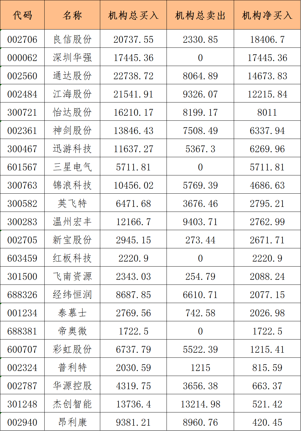 机构资金追踪情况
