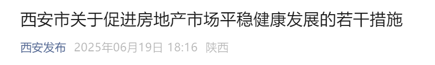 6月19日,“西安发布”微信公众号发布《西安市关于促进房地产市场平稳健康发展的若干措施》,从供需两端提出12条具体措施。