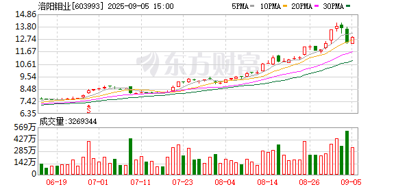 洛阳钼业方面向记者表示,今年上半年,公司实现高质量发展。矿山端营业收入为394.02亿元,同比增长25.64%,实现历史新高,占整体营业收入的比例约42%,较2024年和2023年同期分别提高11个和28个百分点。