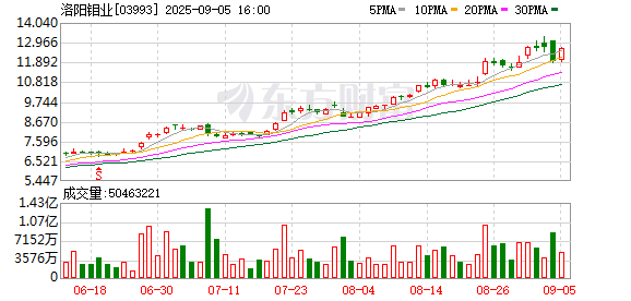 财报数据显示,洛阳钼业上半年实现营业收入947.73亿元,同比下滑7.83%;归母净利润为86.71亿元,同比增长60.07%。