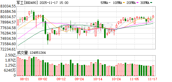 消息面上,申万宏源证券从业绩角度指出,季度报表已显示出逐季改善趋势。进入四季度,预计“十五五”相关订单有望逐步落地,叠加军贸催化,国防军工行情或将再次上行。